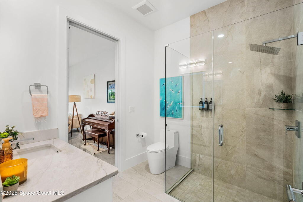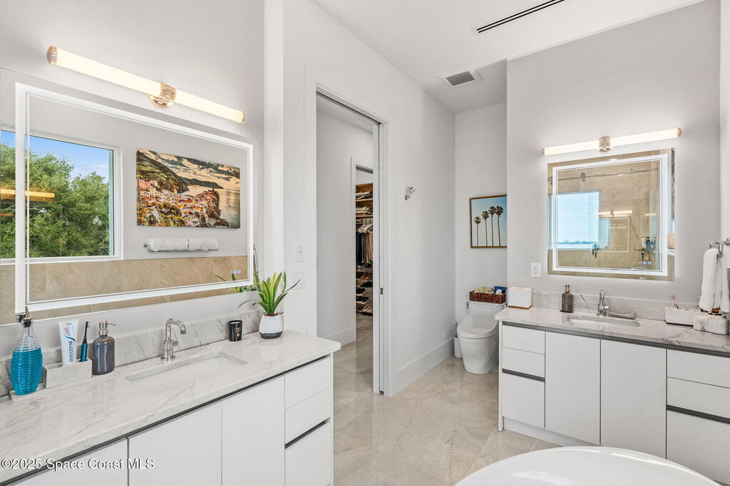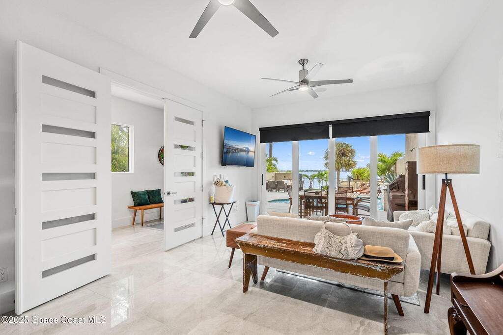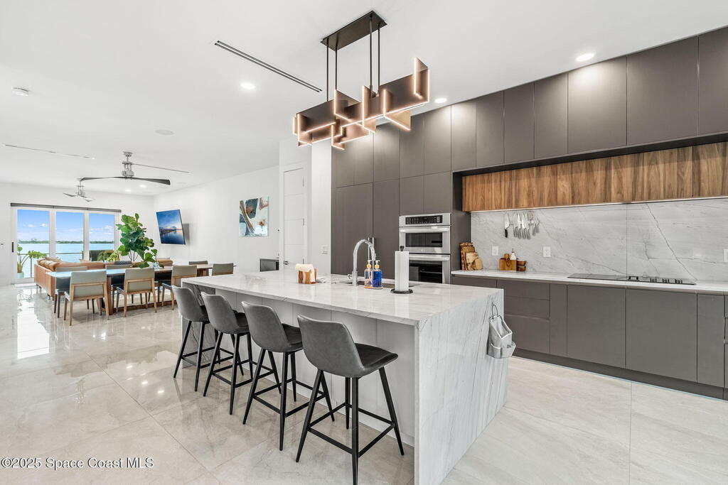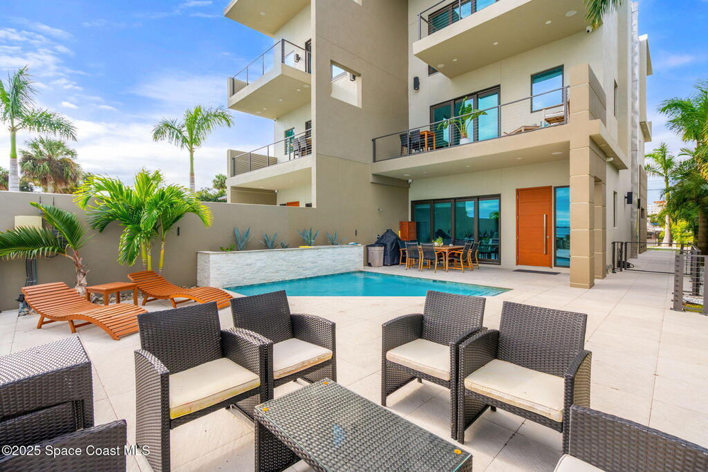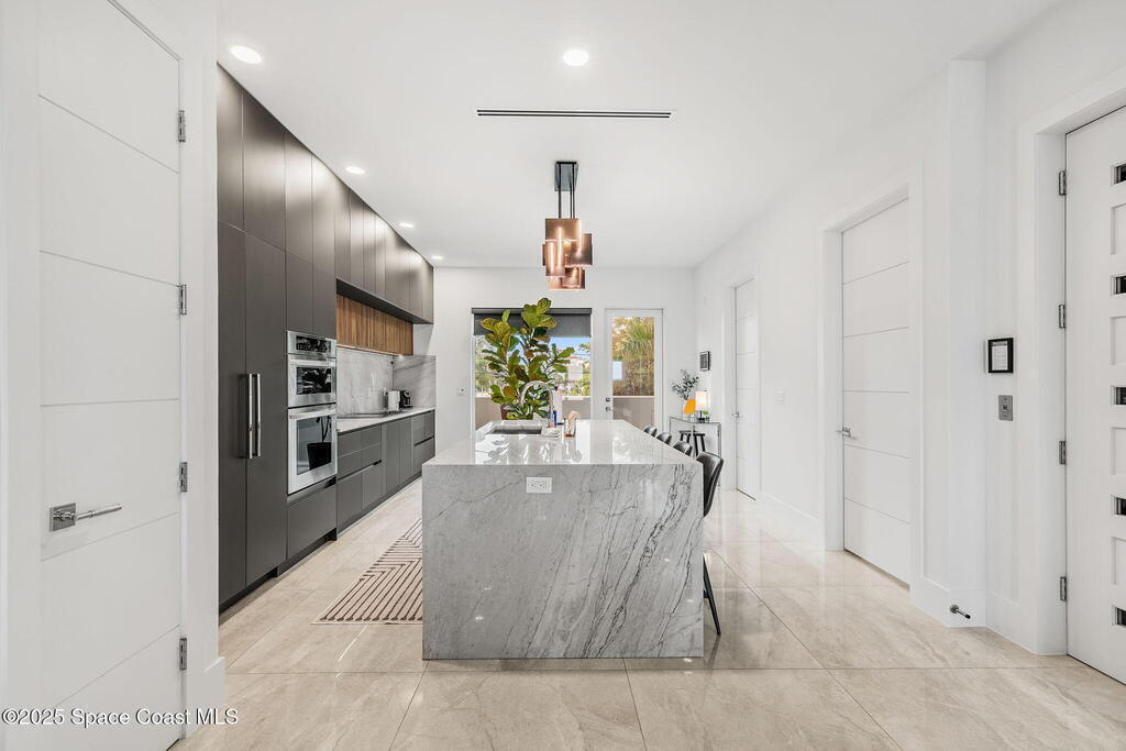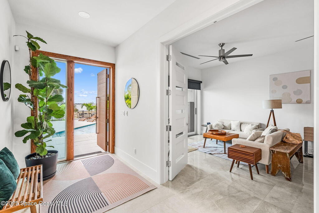 Experience a level of craftsmanship rarely seen on the market. Not a single expense has been spared by this international developer--every inch of this home reflects precision, intention, and luxury. Perched 20 feet above sea level and built like a fortress, this 2023 direct-riverfront residence delivers panoramic Indian River views and European-inspired elegance across 2,936 sq. ft., seamlessly connected by a private elevator to all three levels.Every design element is a statement piece: a sculptural marble-and-oak floating staircase, glass railings, sleek porcelain flooring, and meticulously curated finishes that redefine modern sophistication. The Euro-style kitchen features premium appliances and custom cabinetry designed not just for functionality, but for elevated living and entertaining.Set on a private 0.12-acre riverfront parcel, the estate includes a resort-style pool with waterfall and a 366-ft private dock outfitted with both boat and jet ski lifts.