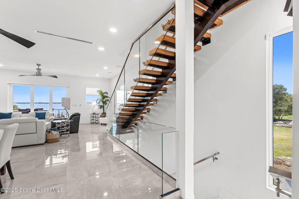 Experience a level of craftsmanship rarely seen on the market. Not a single expense has been spared by this international developer--every inch of this home reflects precision, intention, and luxury. Perched 20 feet above sea level and built like a fortress, this 2023 direct-riverfront residence delivers panoramic Indian River views and European-inspired elegance across 2,936 sq. ft., seamlessly connected by a private elevator to all three levels.Every design element is a statement piece: a sculptural marble-and-oak floating staircase, glass railings, sleek porcelain flooring, and meticulously curated finishes that redefine modern sophistication. The Euro-style kitchen features premium appliances and custom cabinetry designed not just for functionality, but for elevated living and entertaining.Set on a private 0.12-acre riverfront parcel, the estate includes a resort-style pool with waterfall and a 366-ft private dock outfitted with both boat and jet ski lifts.