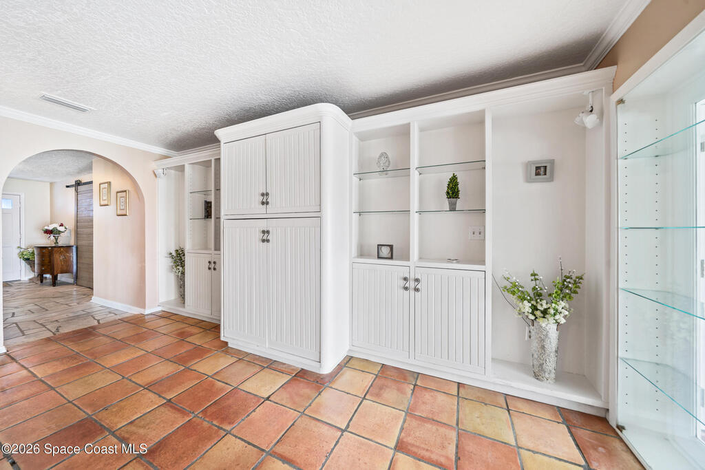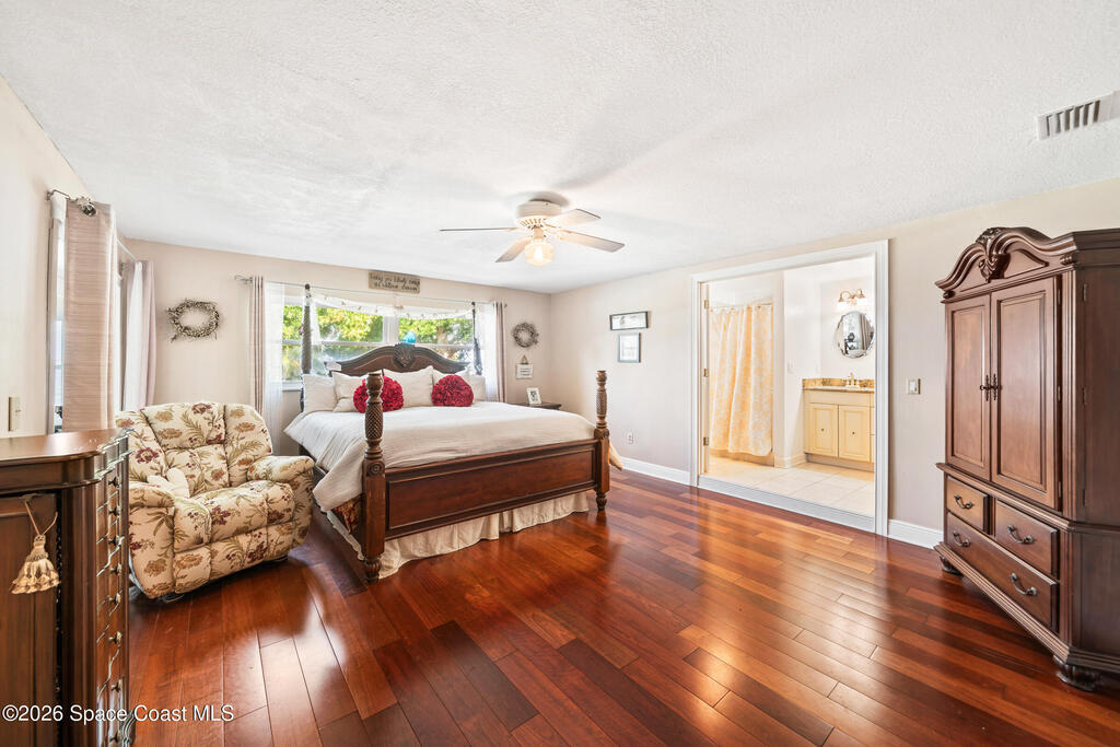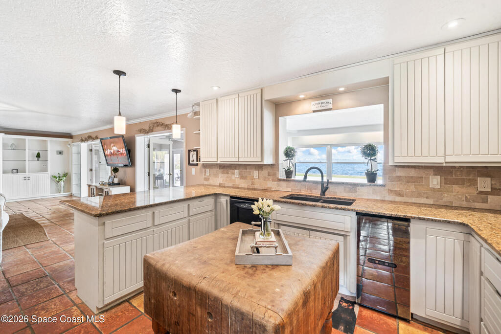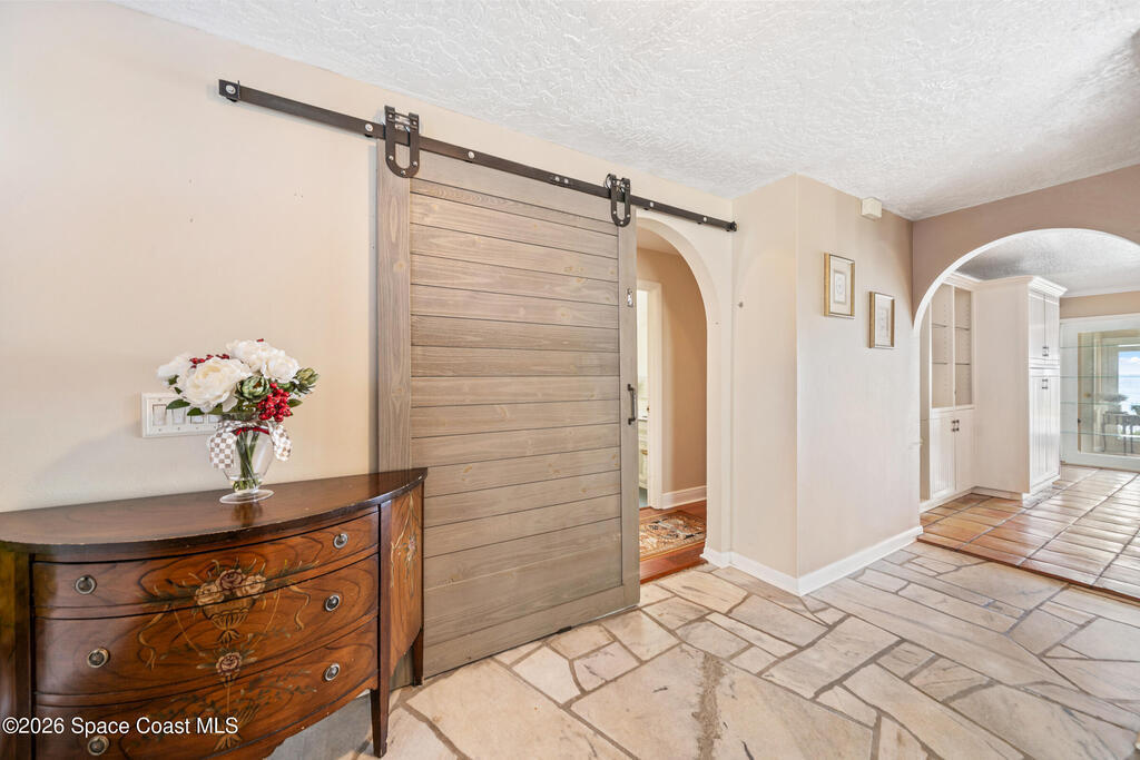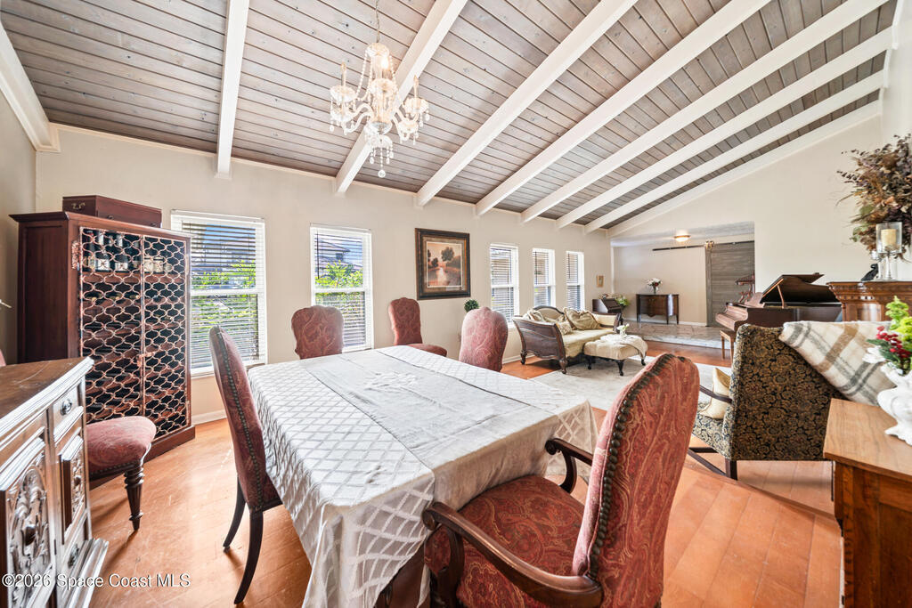 Enjoy direct, unobstructed riverfront living in Indialantic on a rare .46-acre lot with spectacular north, south, and west views. Ideally located between the Melbourne and Eau Gallie Causeways, this property offers breathtaking sunsets and panoramic water views. The home features a split floor plan, vaulted wood-beam ceilings in the living room, and an elegant marble-style entry with a wood barn door separating the bedroom wing. The primary suite and guest bedroom open to a glass-enclosed porch with Spanish tile flooring leading to a large Olympic-style pool overlooking the river. Recent updates include hurricane impact windows and doors, tile reroof partial (2019), seawall (2016), water heater (2022), HVAC (2016), and a new pool pump. The kitchen features white shaker cabinetry, granite countertops, and an eat-in bar with views of the pool and river. Located just half a mile from the beach with easy access to dining, shopping, A-rated schools, golf, and Orlando attractions.