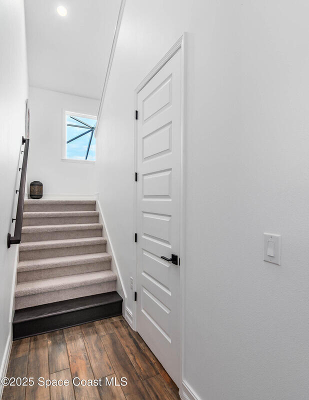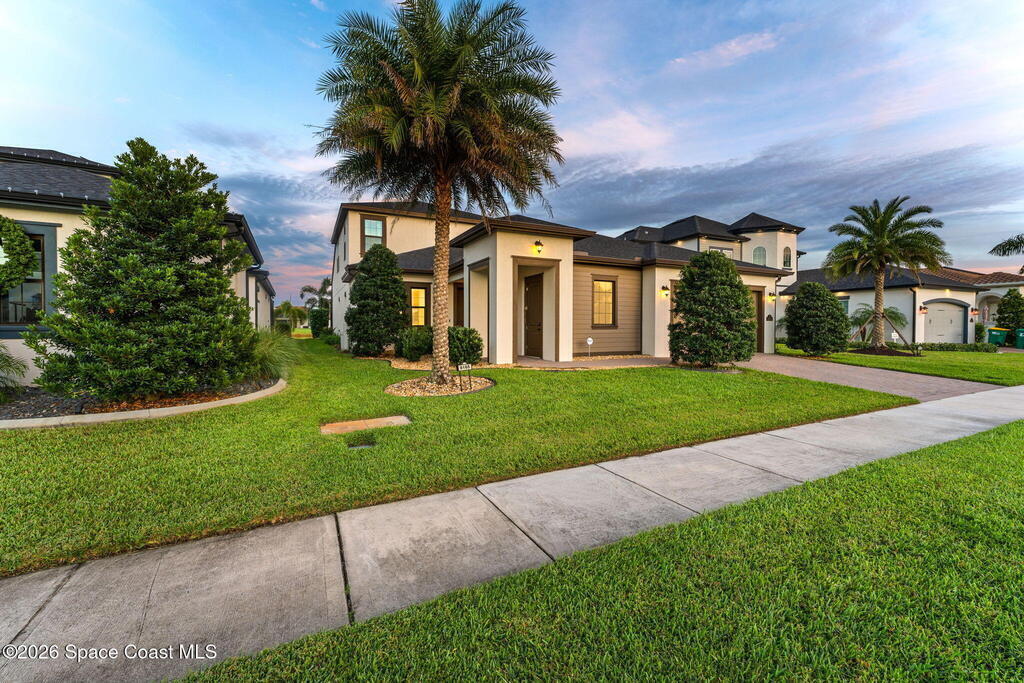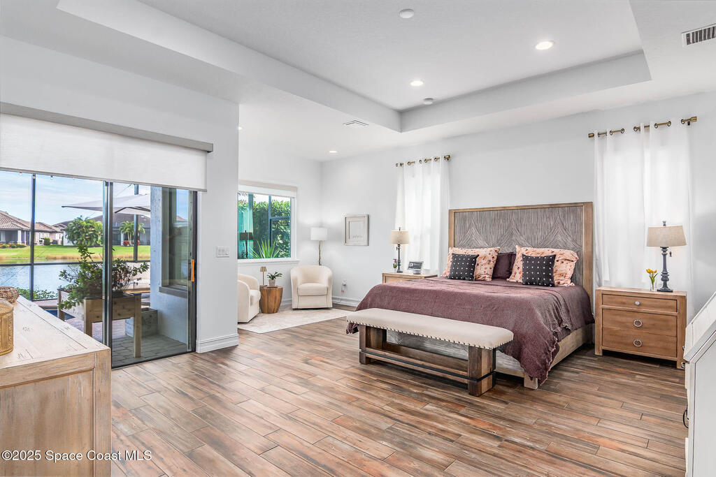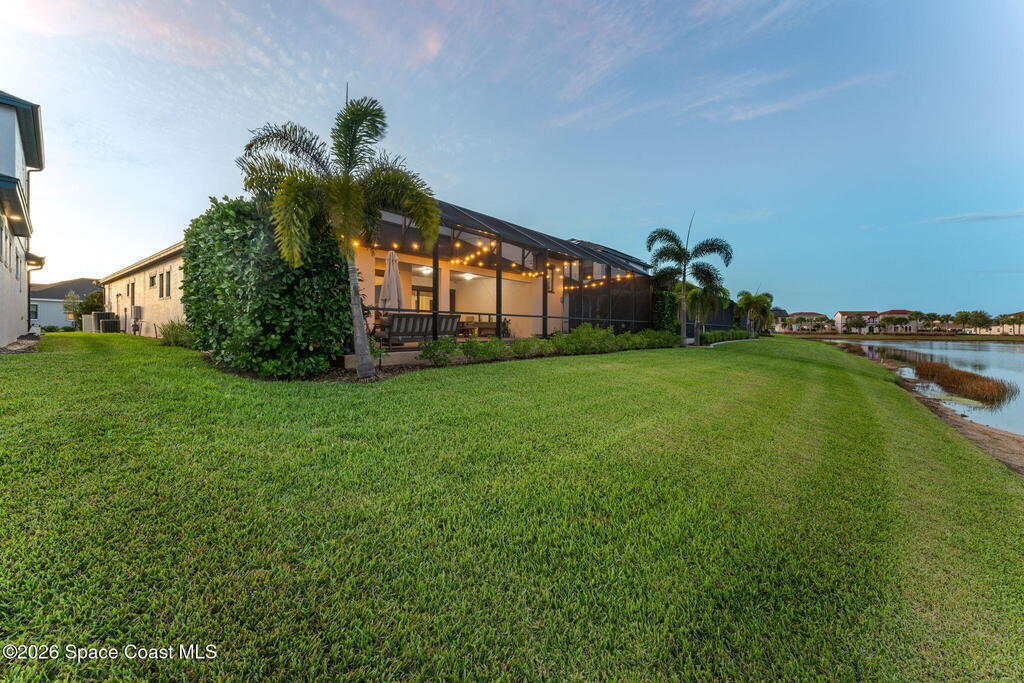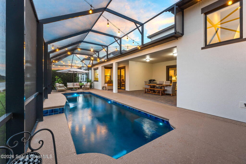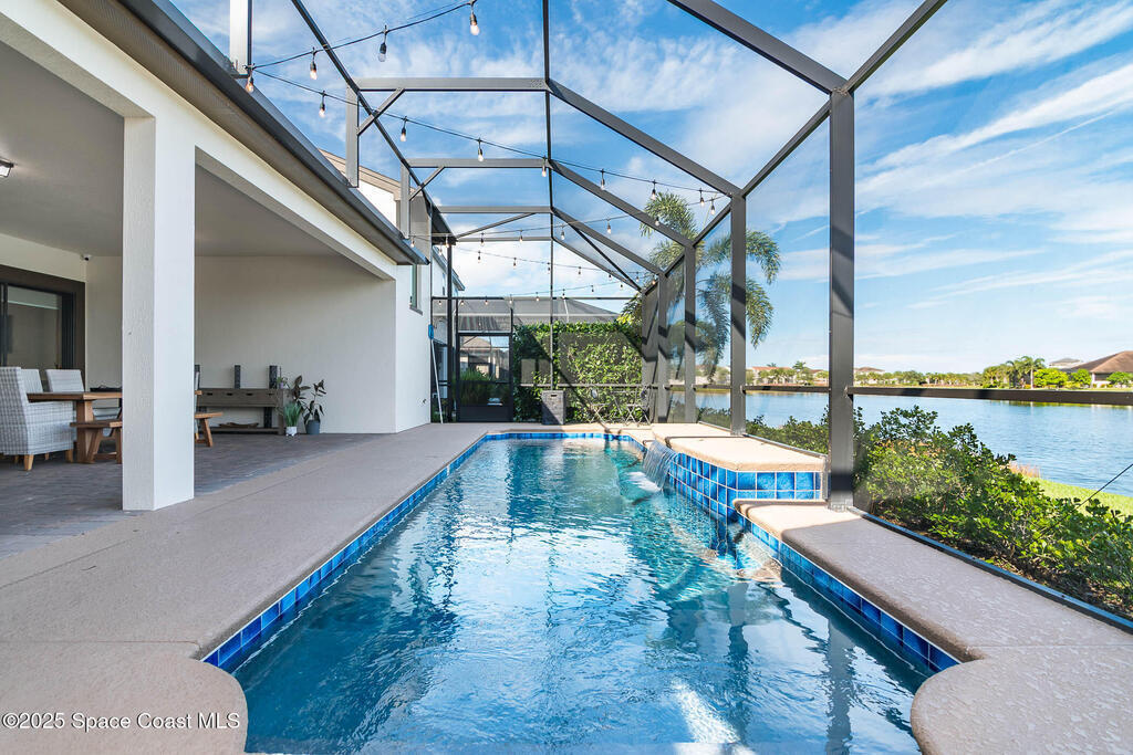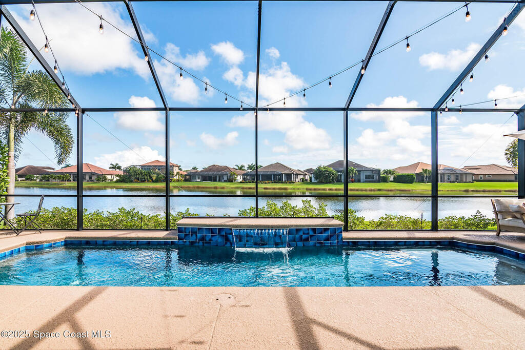 Perfectly nestled on a serene lakefront lot in Viera, Melbourne 32940, this exceptional residence showcases a stunning outdoor setting w/ a waterfall pool & expansive lanai designed for entertaining or quiet relaxation. Wood look tile underscores the ground floor. The great room features a beautiful fireplace, creating a warm yet elegant gathering space. The gourmet kitchen blends beauty & function w/ wall ovens, gas cooktop, vent hood, wine fridge & a remarkable 14' island w/ Calacatta quartz counters & pendant lighting--ideal for hosting & everyday living. Designed for comfort & privacy, it offers 4 bdrms (3 w/ private baths) 4.5 ba + large upstairs bonus room, 8 ft doors, water softener, a 2.5-car garage & convenient drop zone for UPS packages. Smart Home w/ Google Assist, Leviton light switches & nest Doorbell. The owners' ste provides a dedicated sitting area, oversized walk-in closet, dual showers & sinks. A+ schools near top dining, golf & shopping & just 15 min from the beach.