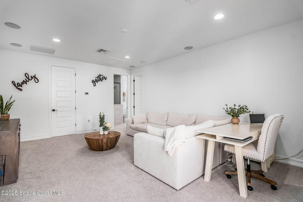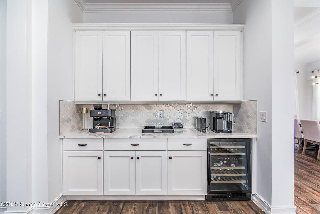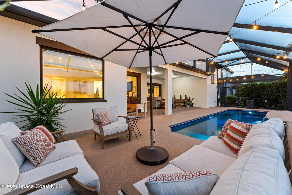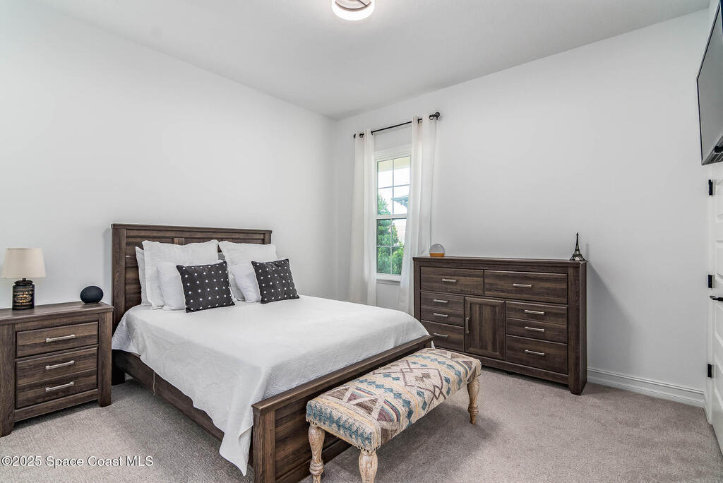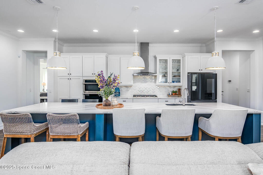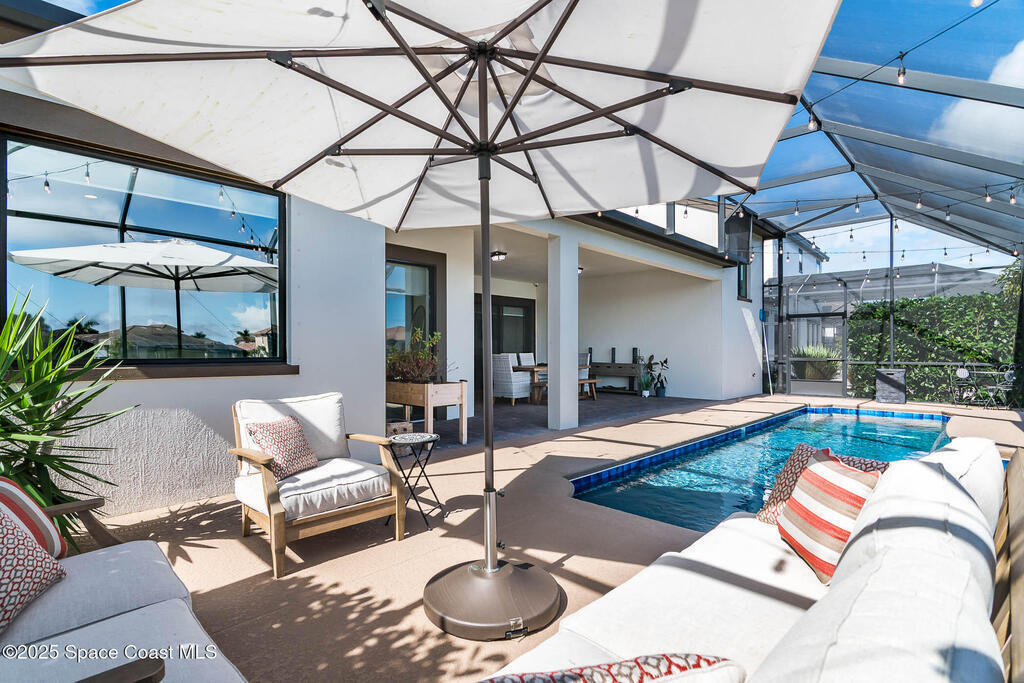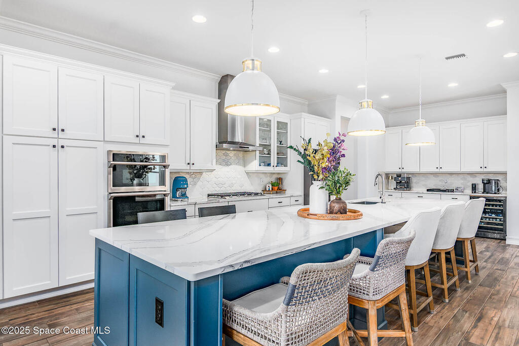 Perfectly nestled on a serene lakefront lot in Viera, Melbourne 32940, this exceptional residence showcases a stunning outdoor setting w/ a waterfall pool & expansive lanai designed for entertaining or quiet relaxation. Wood look tile underscores the ground floor. The great room features a beautiful fireplace, creating a warm yet elegant gathering space. The gourmet kitchen blends beauty & function w/ wall ovens, gas cooktop, vent hood, wine fridge & a remarkable 14' island w/ Calacatta quartz counters & pendant lighting--ideal for hosting & everyday living. Designed for comfort & privacy, it offers 4 bdrms (3 w/ private baths) 4.5 ba + large upstairs bonus room, 8 ft doors, water softener, a 2.5-car garage & convenient drop zone for UPS packages. Smart Home w/ Google Assist, Leviton light switches & nest Doorbell. The owners' ste provides a dedicated sitting area, oversized walk-in closet, dual showers & sinks. A+ schools near top dining, golf & shopping & just 15 min from the beach.