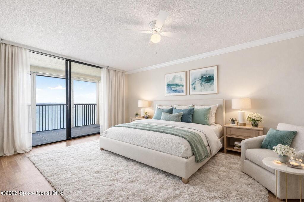 RIVERFRONT views that deserve their own postcard in beautiful Cape Canaveral. From your private balcony, enjoy front-row river views stretching far south along the water, with cruise ships visible as they pass near Port Canaveral. Imagine waking up and stepping onto the balcony from your riverfront bedroom with coffee in hand, taking in horizon-to-horizon views. Glowing sunsets, dolphins in the water, even the occasional rocket launch rising over the Space Coast sky make this waterfront lifestyle unforgettable. Wood kitchen cabinets, solid surface countertops & stainless steel appliances add beauty to this unit. The guest bath features a Jack/Jill design connecting to the second bedroom. Resort-style amenities: a waterfront gazebo, fishing pier, boat ramp, tennis, pickleball, two pools (one heated), sauna, clubhouse, car wash area, & a private one-car garage. Walk to the beach.Minutes from some of the area's favorite local restaurants, and 45 minutes from Orlando International Airport