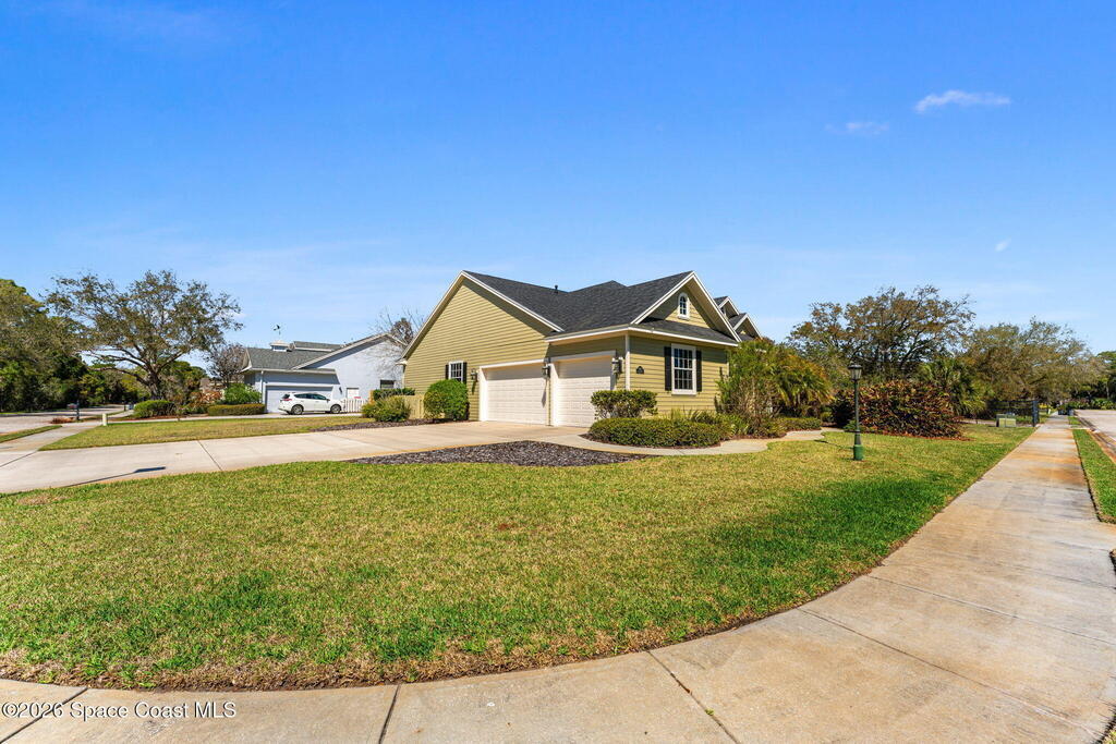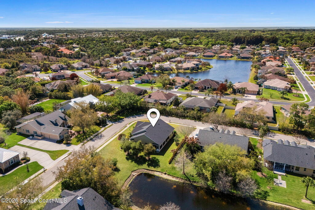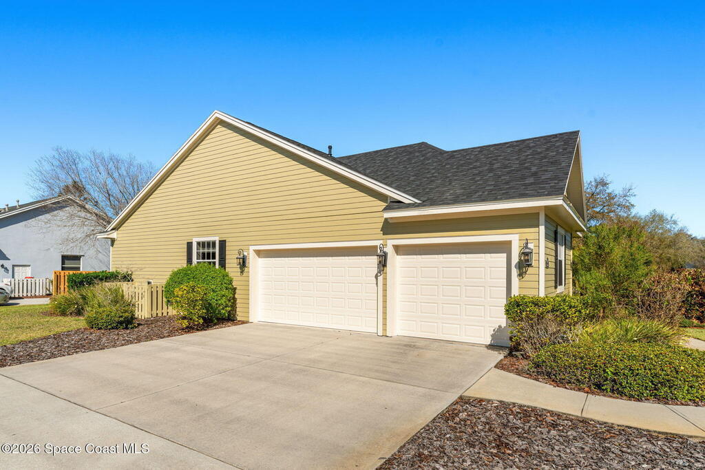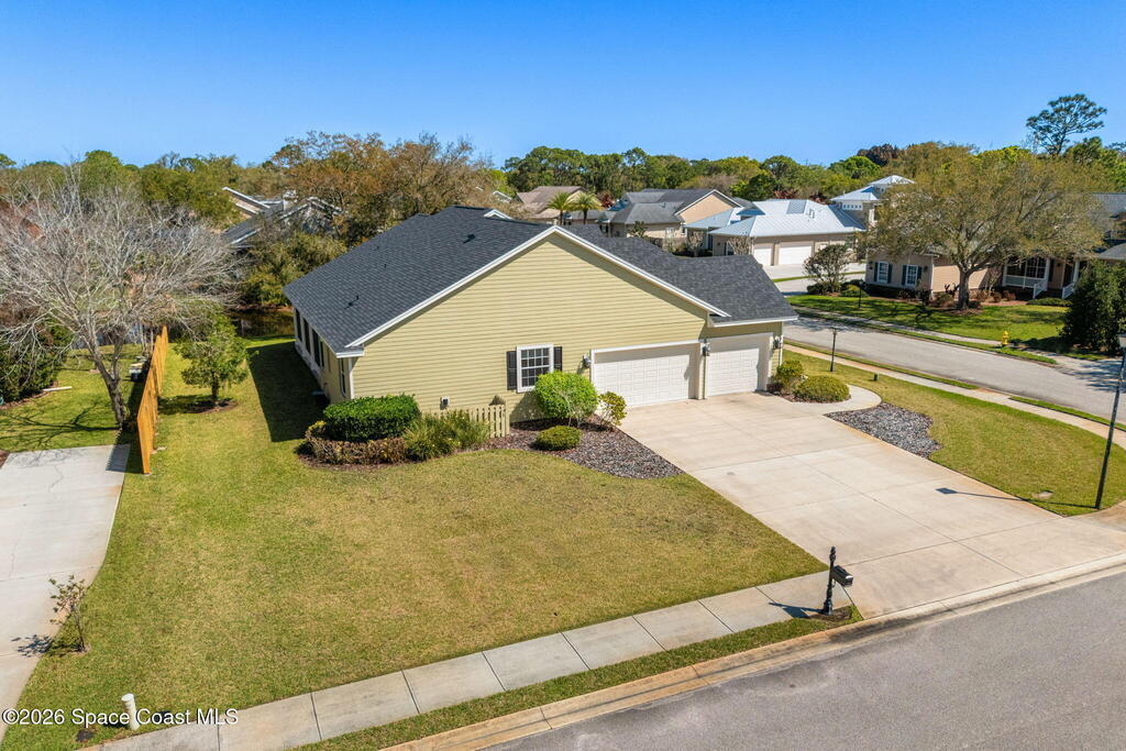 Discover a stunning tropical oasis nestled in a serene gated community, complete with a sparkling lake and majestic mature trees. This enchanting neighborhood features just 30 homes, all crafted by one of Brevard's top builders, ensuring a peaceful and inviting atmosphere. Hardie siding adds charm and durability to this .5 acre corner lot, and welcomes you with a thoughtfully designed split floor plan offering 3 cozy bedrooms and 2 bathrooms, plus a convenient separate laundry room and a spacious 3-car garage. With a newer roof (December 2024), fresh paint (2025), and brand new carpeting, this home shines with warmth. The generously sized kitchen is perfect for both relaxing dinners and entertaining friends, making this residence a true haven for joyful living.