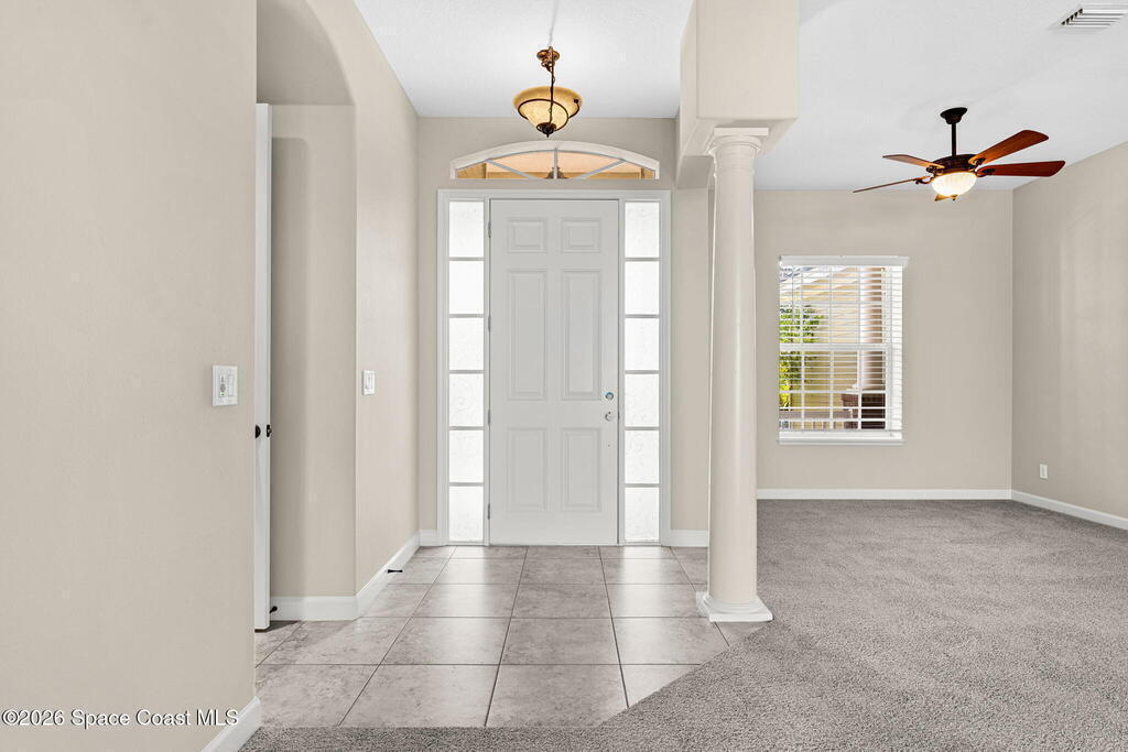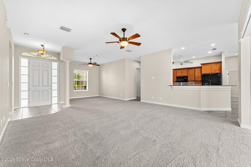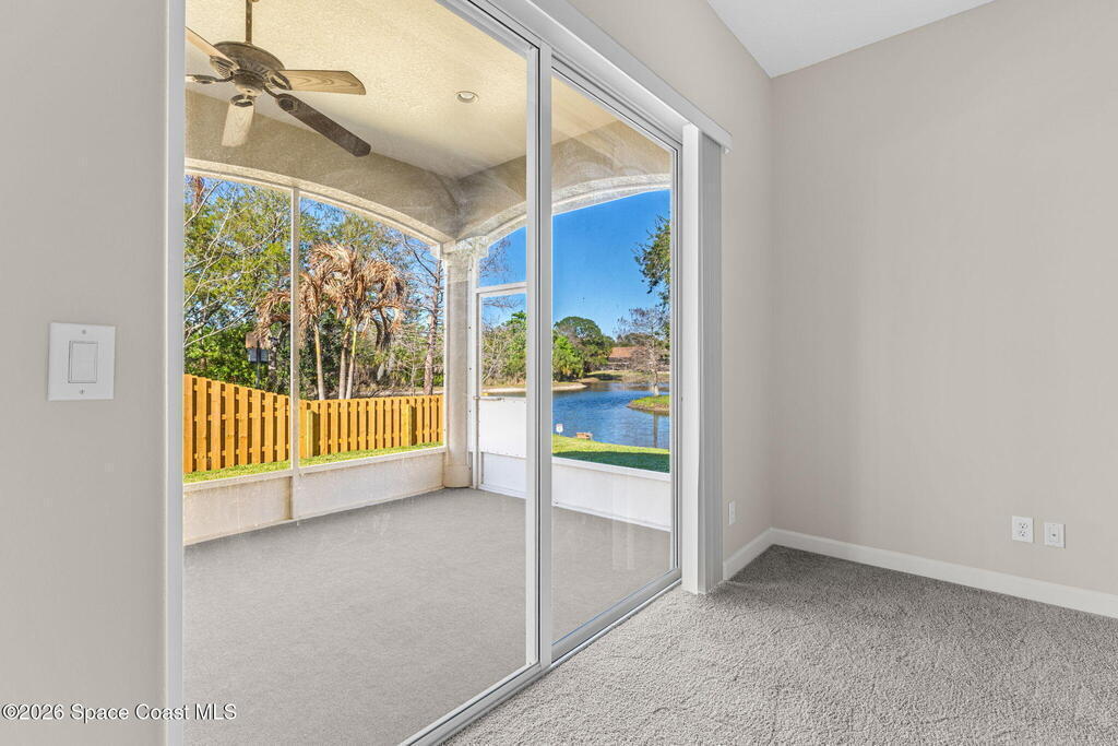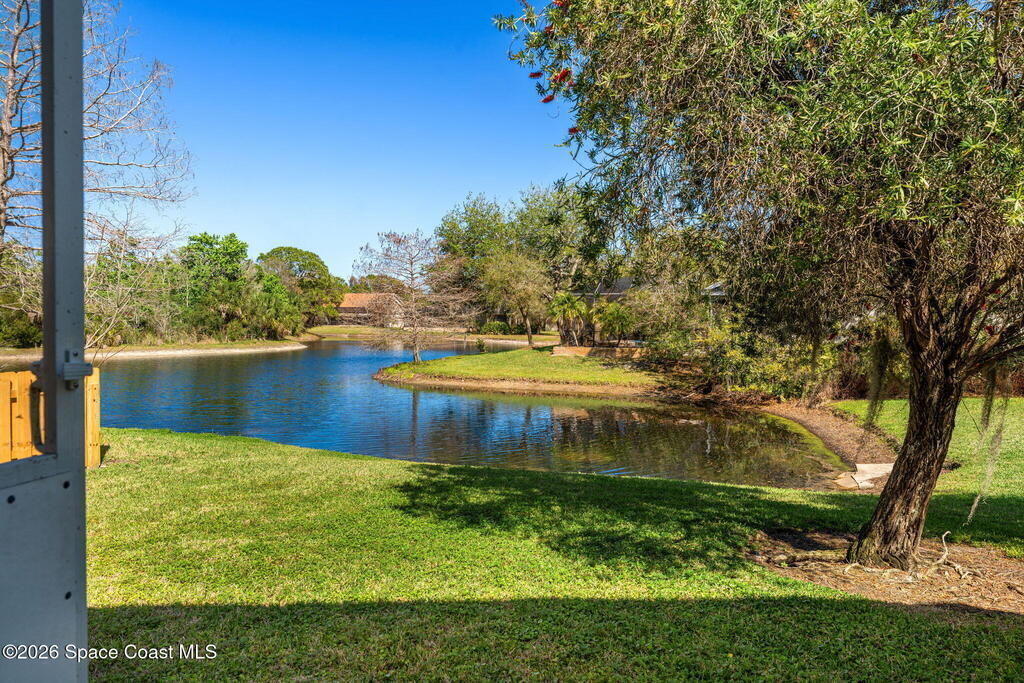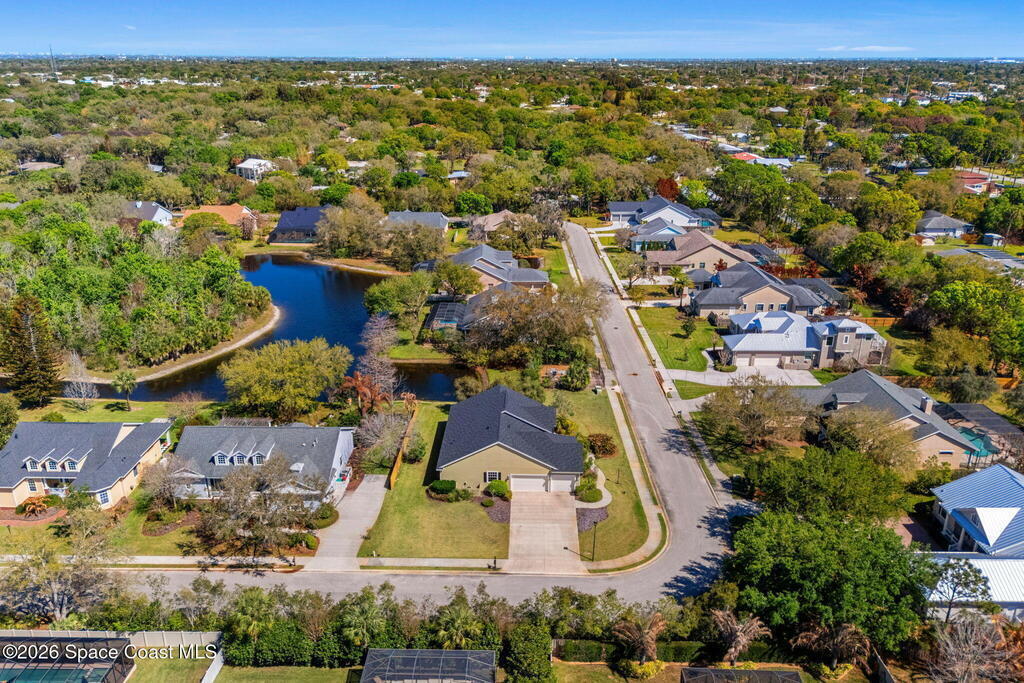 Discover a stunning tropical oasis nestled in a serene gated community, complete with a sparkling lake and majestic mature trees. This enchanting neighborhood features just 30 homes, all crafted by one of Brevard's top builders, ensuring a peaceful and inviting atmosphere. Hardie siding adds charm and durability to this .5 acre corner lot, and welcomes you with a thoughtfully designed split floor plan offering 3 cozy bedrooms and 2 bathrooms, plus a convenient separate laundry room and a spacious 3-car garage. With a newer roof (December 2024), fresh paint (2025), and brand new carpeting, this home shines with warmth. The generously sized kitchen is perfect for both relaxing dinners and entertaining friends, making this residence a true haven for joyful living.