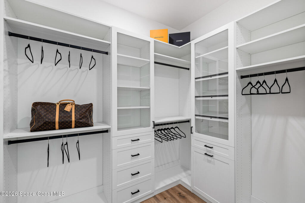- Interior FeaturesBreakfast Nook, Ceiling Fan(s), Central Vacuum, Eat-in Kitchen, Entrance Foyer, Guest Suite, His and Hers Closets, Kitchen Island, Open Floorplan, Pantry, Primary Bathroom -Tub with Separate Shower, Smart Thermostat, Split Bedrooms and Walk-In Closet(s)