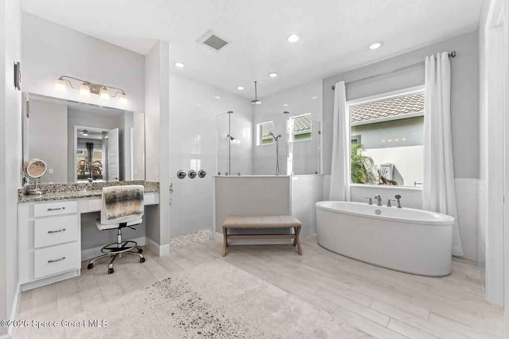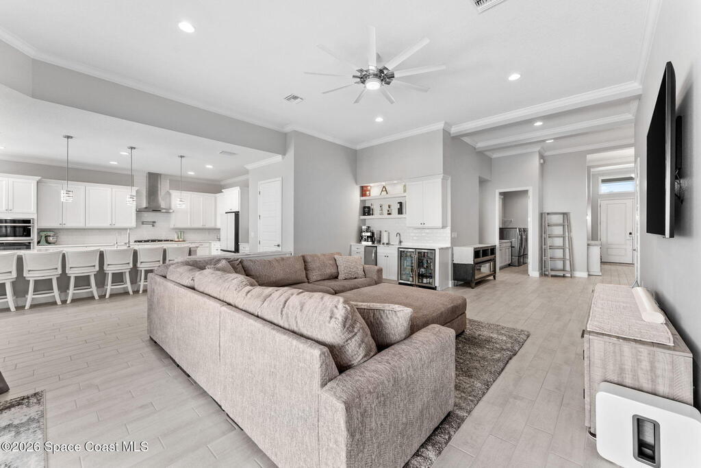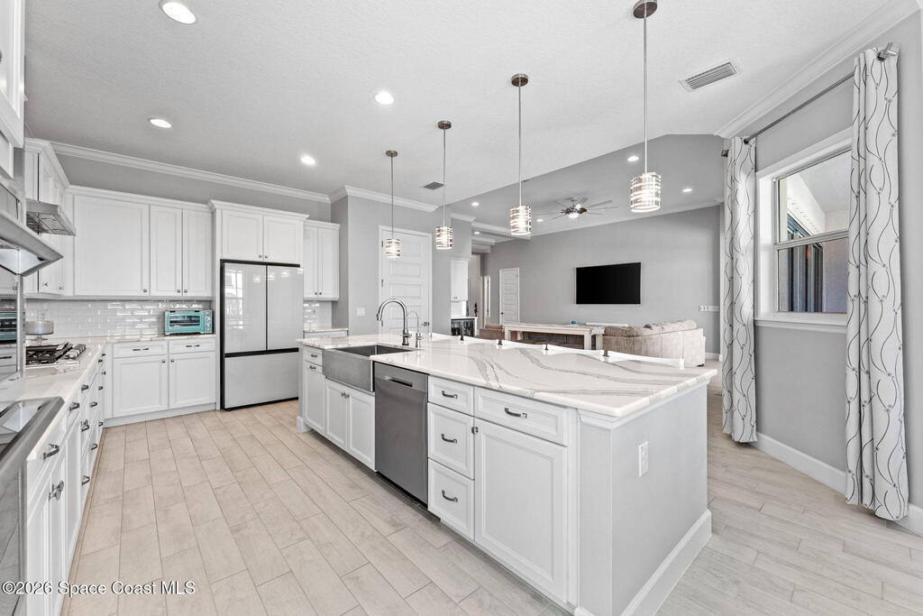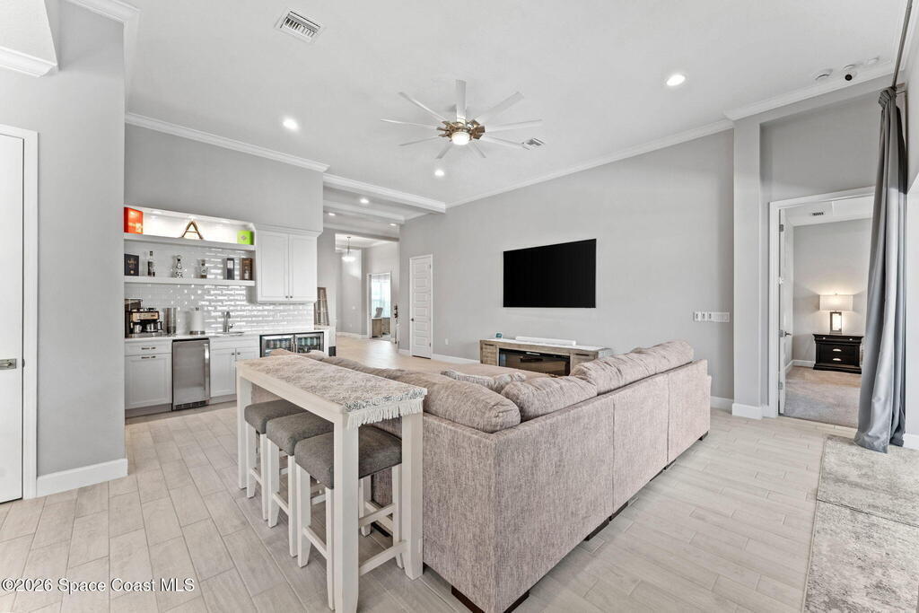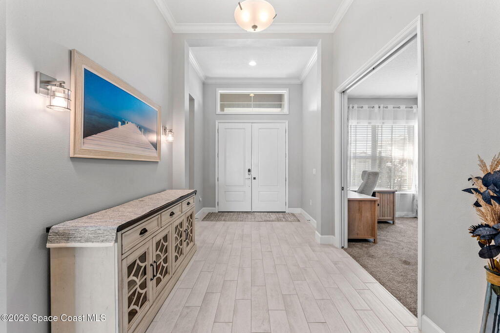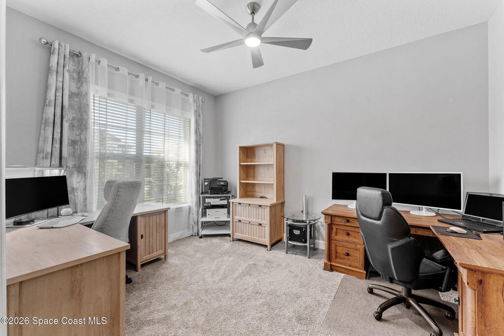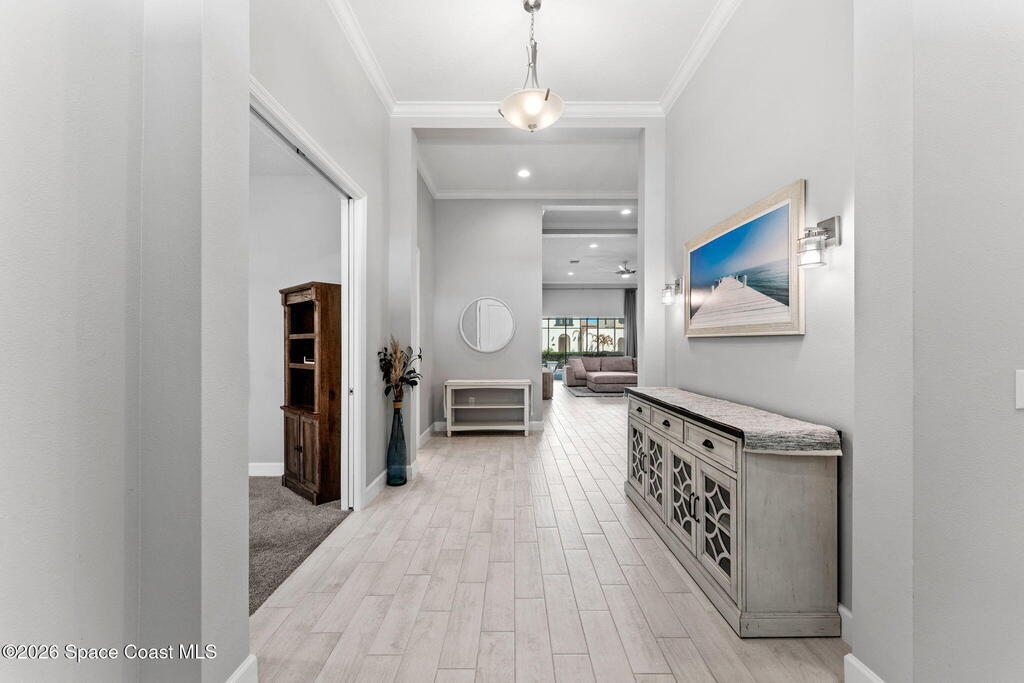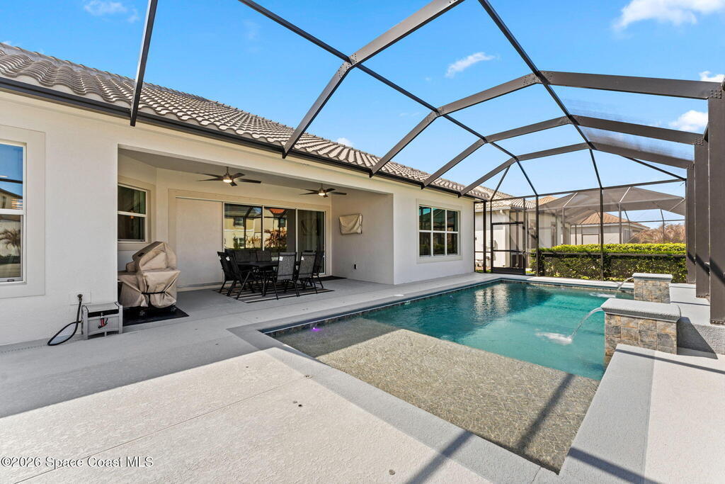 Location people love, features buyers actually want. Tucked on a quiet cul de sac in Reeling Park and walkable to Viera Elementary, this home lives like a 4-bedroom thanks to a front office that easily functions as the fourth bedroom. The split floor plan offers privacy and space with 4 baths, a 3-car garage, generous walk-in closets, and a luxurious primary suite with dual closets.The kitchen shines with quartz countertops, gas range, breakfast bar seating, an eat-in dining area, and an oversized 6x8 walk-in pantry. Entertaining is easy with a wet bar and bar refrigerator, while a reverse osmosis system, whole-home water softener, and tankless water heater deliver top-tier water quality. Central vacuum, smart thermostat, and smart doorbell add everyday convenience.Out back, enjoy a private saltwater pool with equipment and child safety fence. Impact windows and a durable tile roof provide peace of mind, with shutters only needed for the oversized patio sliders.