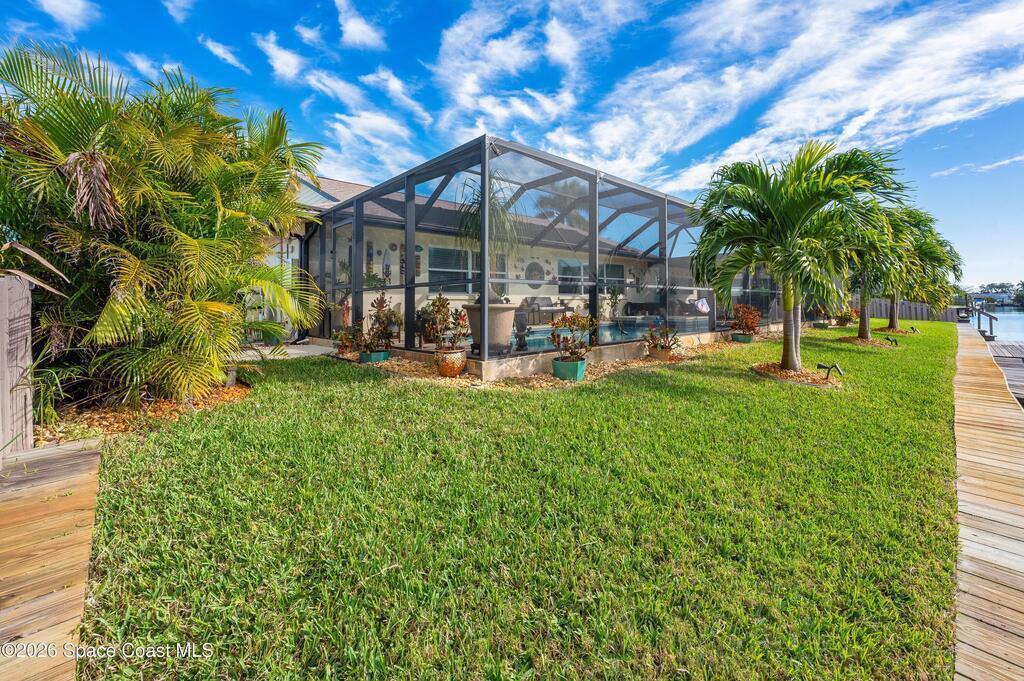 Paradise Found! Bring your boat, as this large, updated 3/2 ranch house with a beautiful open concept sits beside a wide canal leading out to the Banana River and Atlantic Ocean with a newer vinyl seawall!!! Relax or wind down in the screened patio and pool in comfort, watching manatees, dolphins, and Florida's tropical fauna just beyond the sea wall. Beautifully landscaped and private with a secluded feel yet nestled in the heart of Brevard's most popular dining, near the port, a close-up view of historic rocket launches from the front or back yard, clean beaches, and shopping all less than 10 minutes away.