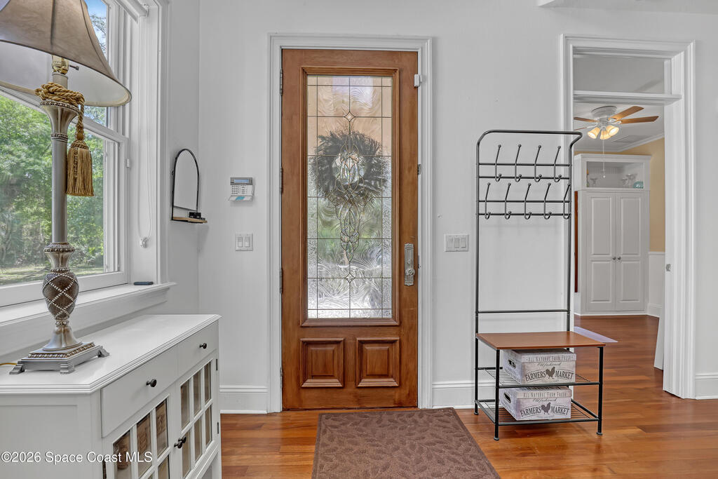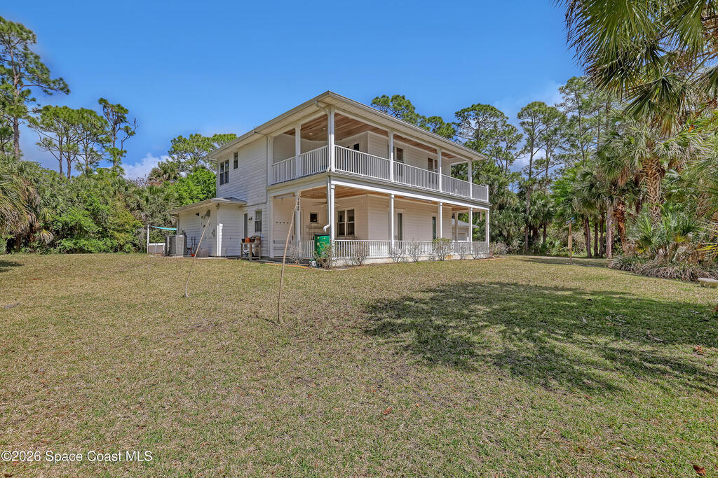 The most special & unique home and property you'll see! Absolute one of a kind w/so much character. 2 story concrete block w/concrete hardiboard siding. Wrap around porches & balconies w/amazing nature views. Complete & total privacy w/over 2 beautiful fenced acres & nobody around you. Brazilian cherry hardwood floors throughout. Pella hurricane windows & doors. Island kitchen w/custom cabinetry w/crown, tiled backsplash, quality appliances incl double oven, weather station above farmhouse sink, & granite counters. Large freeform pool & entertaining area w/marble travertine tile. Raised ceilings on both floors w/8ft doors. 2 master suites. 2 fireplaces. Whole house solar system cuts power bill by 2/3. Metal roof. On demand tankless water heater. Central vac. Private gated entrance. Stocked pond w/fountain. Huge 3 car garage epoxy floor, 8ft overhead doors & workshop area. Covered RV/boat parking w/water & 30amp power. City water plus R/O water treatment system. Surround sound. Must see