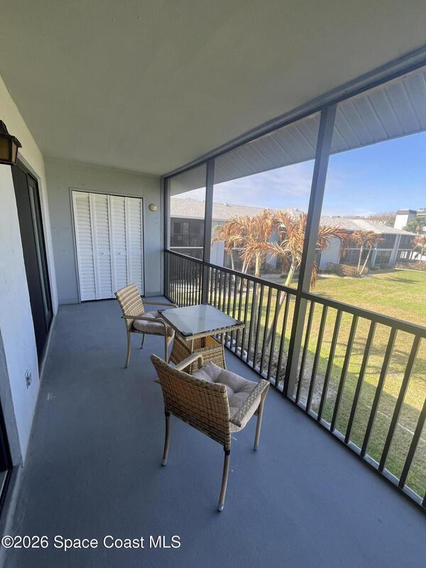 Easy living with your own spot in the heart of Cocoa Beach! 1 and a half block walk to the best beach and restaurants in town! Master suite with views of the pool and sunsets on the river. Front bedroom looks to ocean side! Hurricane Sliders and windows new in 2022. Screened deck (with storage room) is the ideal spot to sip your morning coffee or dine and relax while you enjoy the sunsets! Clubhouse has a sauna and the grounds have both a heated and summer pool! Move in ready!! Four Seasons is well managed and a great community!