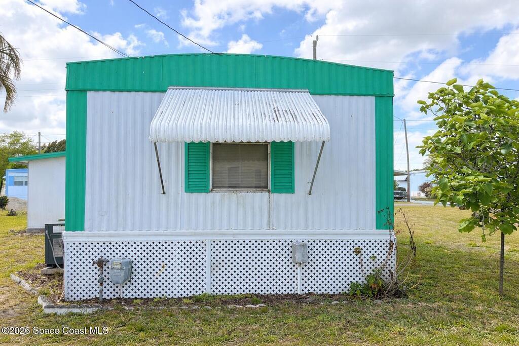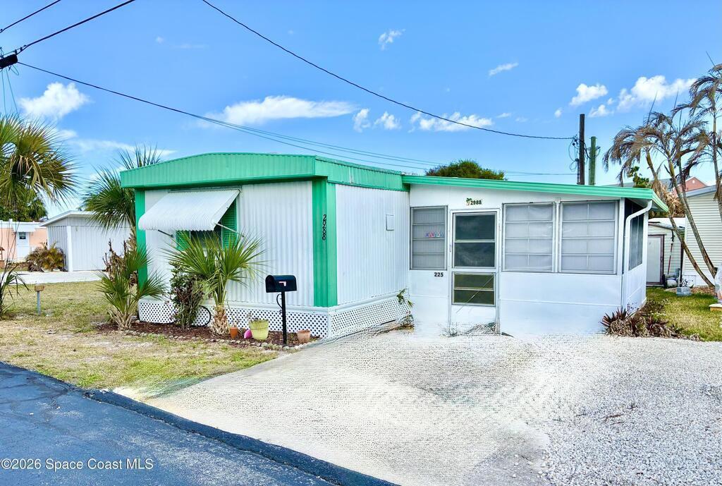 2 bedroom 1 bath home located in desirable Palm Bay Estates! This charming manufactured home offers coastal living just minutes from the scenic Indian River Lagoon. Plenty of space for outdoor relaxation to enjoy Florida's year-round sunshine. Ideal for seasonal residents, a winter getaway or as a peaceful full-time residence!Residents of Palm Bay Estates enjoy an active 55+ community with amenities such as a clubhouse, heated pool, social activities, along with easy access to boating, fishing and nearby beaches. The neighborhood's location near US-1 makes it convenient to shopping, dining and the surrounding Space Coast attractions.