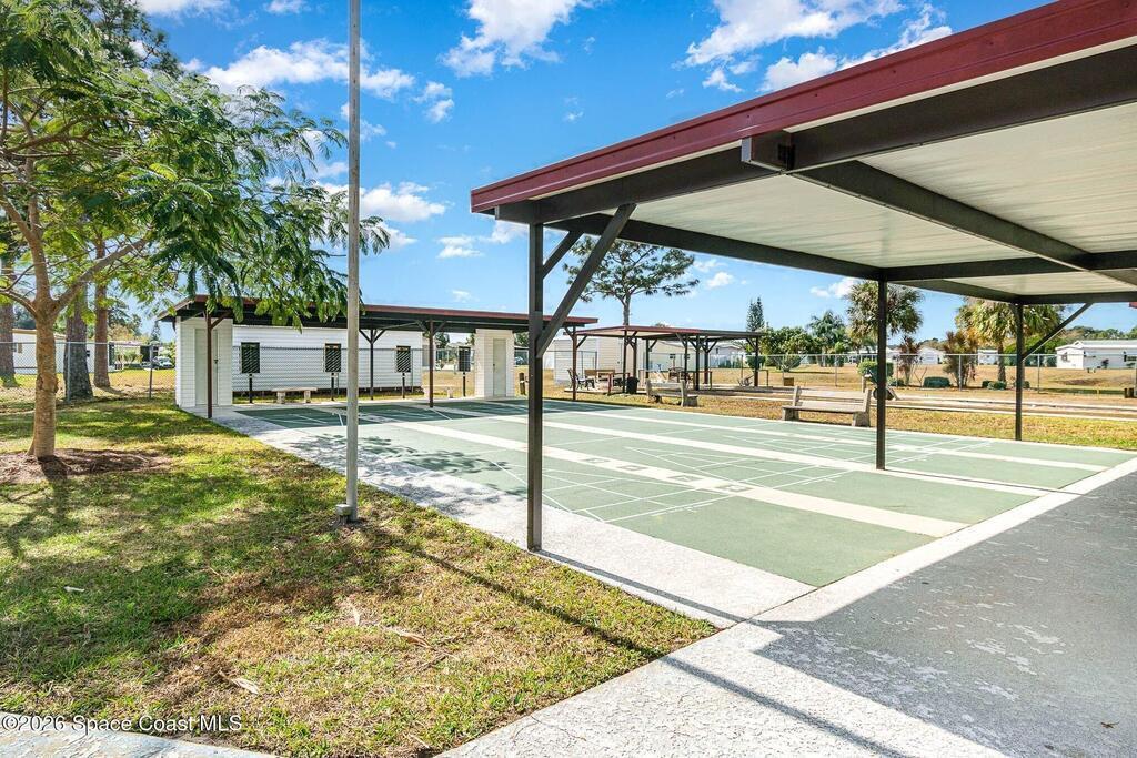 Located on a quiet street surrounded by mature Florida pines, this well-maintained 2005 home in Holiday Park offers a comfortable and functional layout with 2 bedrooms and 2 full baths, thoughtfully split for added privacy. Recent updates include a 2024 roof, brand new water heater, and fresh interior paint, making this home truly move-in ready. Shutters are in place for most windows, providing added protection and peace of mind. The open living and dining areas flow easily, creating a practical space for everyday living. Holiday Park is a gated 55+ community known for its active lifestyle and convenience, featuring a clubhouse, community pool, and a variety of social activities. Ideally located with easy access to shopping, dining, and major roadways.The ramp into front door can be removed if buyer prefers.