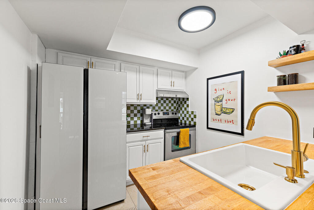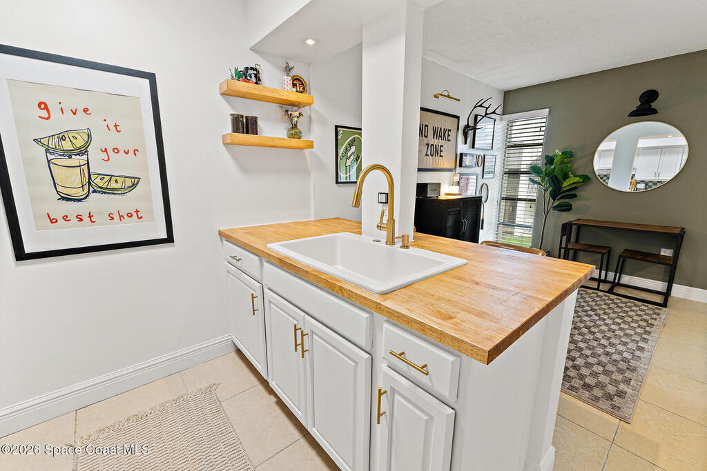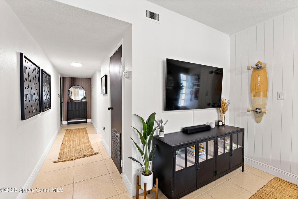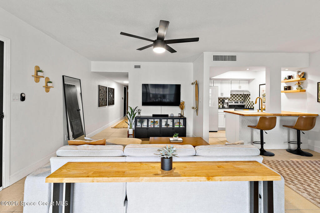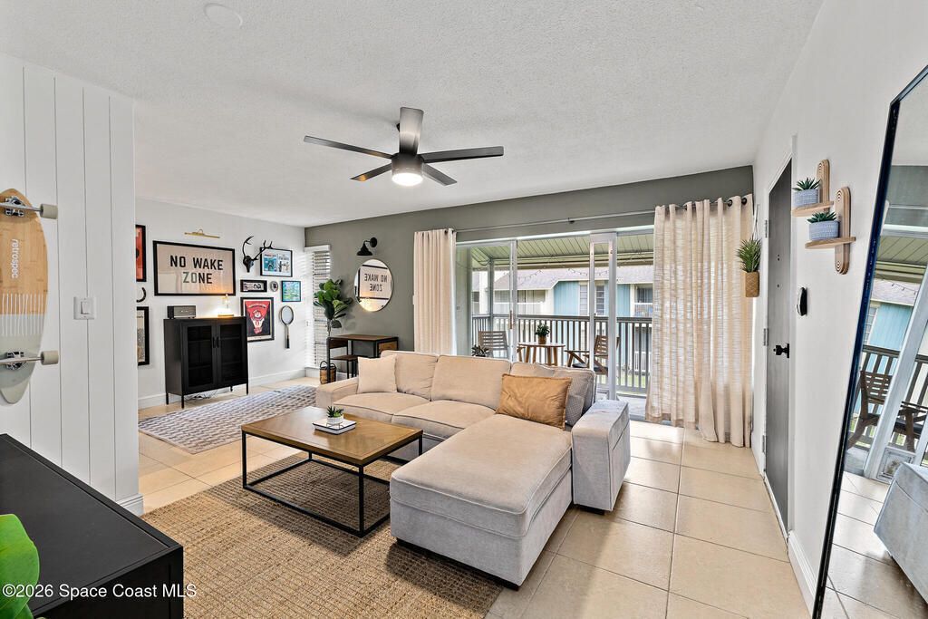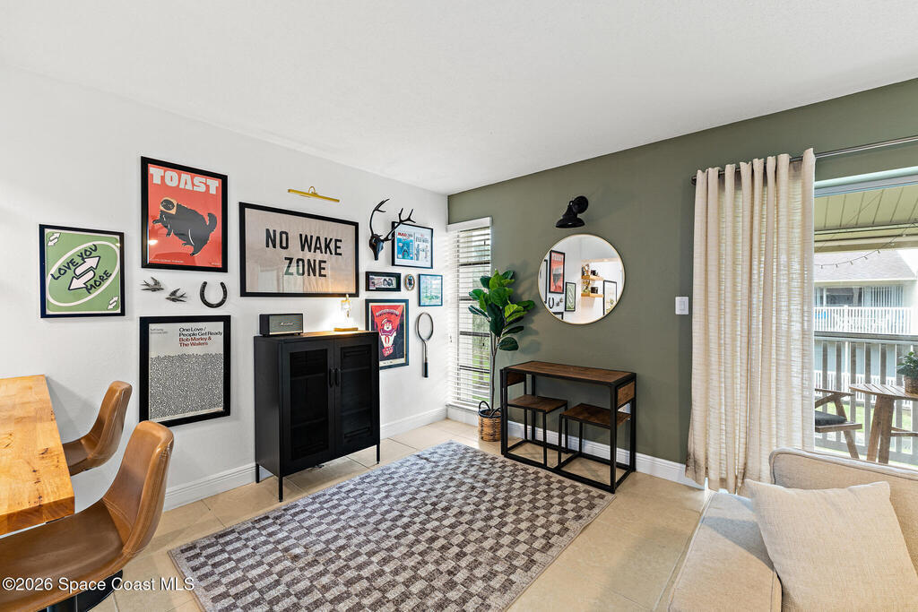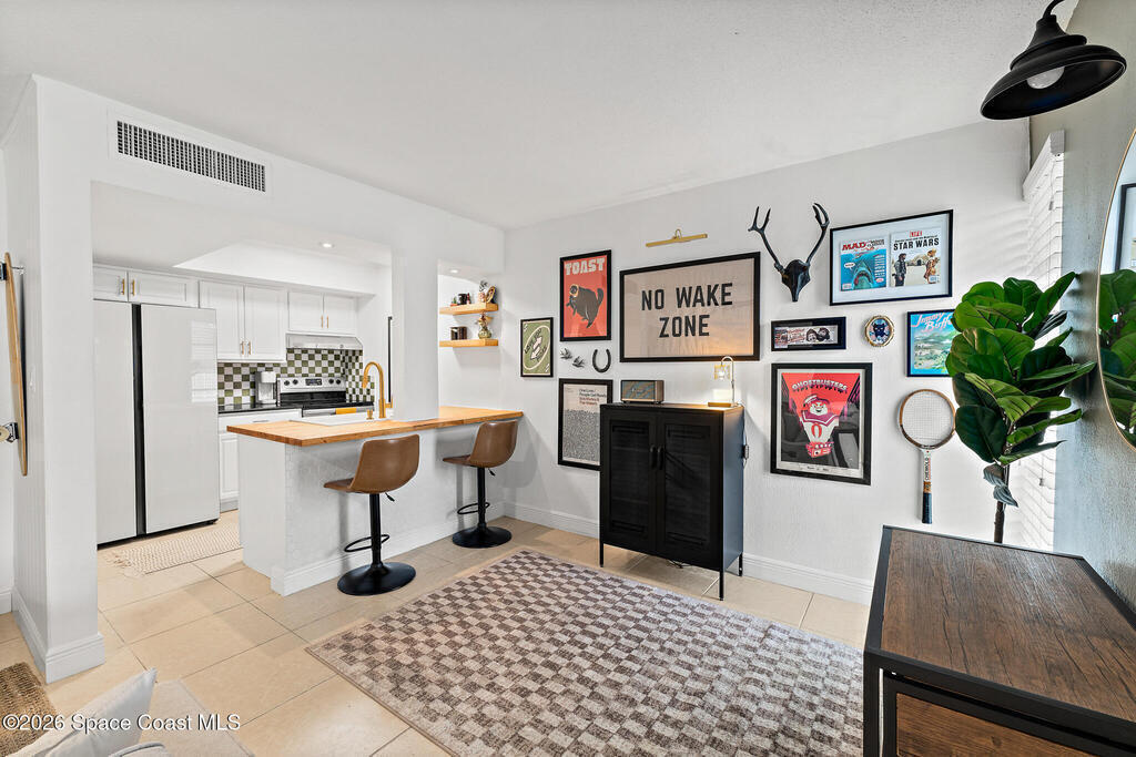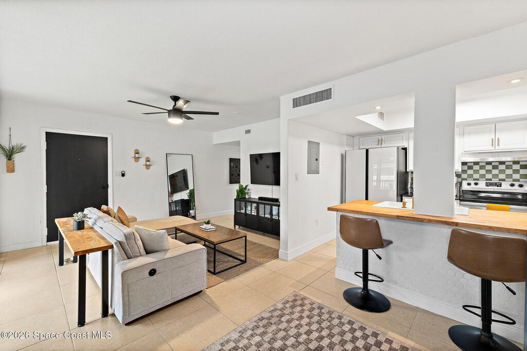 Nestled in the serene Treasure Coast Harbour Villas waterfront community, this 1-bed, 1-bath second-floor condo offers the best of Banana River living! The updated home features an open-concept layout with tile flooring and abundant natural light throughout, complemented by a private screened-in balcony patio. The renovated eat-in kitchen features stainless appliances, granite countertops, custom tile backsplash, and a butcher-block breakfast bar. Upgrades include newer paint and hot water heater, smart-lock keyless entry, 2023 electrical panel, and a tastefully-updated bed and bath. Amenities include a heated pool, fitness center, laundry facilities, fishing pier, boat dock and optional boat storage. Centrally located in the heart of Merritt Island, this home is ideal for full-time living or as an investment with a 6-month rental minimum. Minutes from Cocoa Beach, Port Canaveral cruise terminal, shopping, and dining. Live the island lifestyle, schedule your showing today!