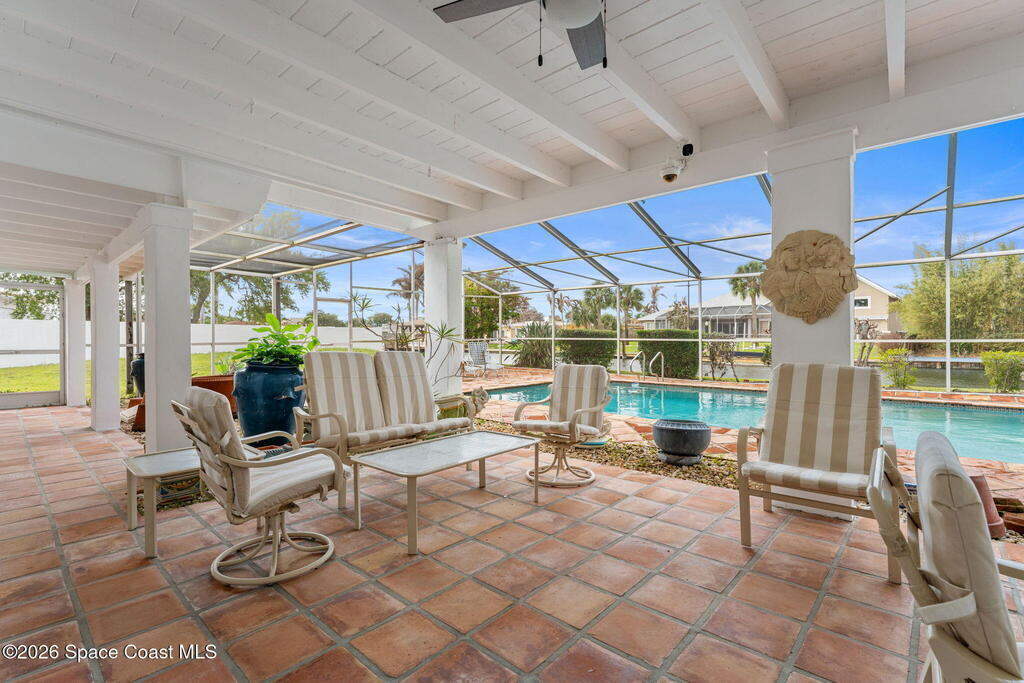 Cocoa Beach waterfront home with 175 feet of frontage, a rare private boat ramp, and direct Intracoastal access with no fixed bridges to open water, offering a true Florida waterfront lifestyle. Located on Bayshore Drive, this canal-front residence provides access to the Banana River, where mornings begin on the water and evenings unfold with sunset views. Inside, the home is oriented to capture water views throughout the main living spaces, creating a natural flow between the kitchen, dining, and living areas. The layout offers privacy with a main-level guest suite and a primary retreat featuring a spacious four-piece bath. Outdoor living stands apart with a private dock, boat lift, and grandfathered-in boat ramp. Just minutes from the beach, Cocoa Beach Pier, and Port Canaveral, this is a rare opportunity to own substantial waterfront frontage with true boating capability in one of Florida's most sought after coastal locations.