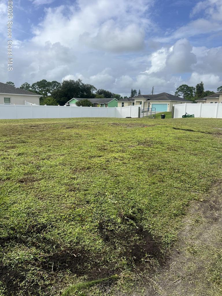 Build your dream home on this beautiful 0.23-acre cleared lot in Port Malabar Unit 23 located in the southeast section of Palm Bay. This buildable residential lot sits on a paved road with well onsite. The property is cleared and features a PVC front fence with gate, one additional side has PVC fencing, and chain-link fencing is across the back of the lot. An existing driveway apron provides convenient street access, and impact fees have already been paid. Fill dirt for the home pad is already on site, making this lot ready to build now. Excellent location -- close to Publix, Sunrise Elementary, Heritage Parkway, shopping, and major roadways. Enjoy the peace of a tranquil neighborhood while still being just minutes from all conveniences. Key features once again are onsite well, impact fees paid, existing driveway apron, cleared, 3 sides of property of fencing and fill dirt for home pad onsite. This area of Palm Bay is expanding fast! Don't miss out on this great opportunity!!!